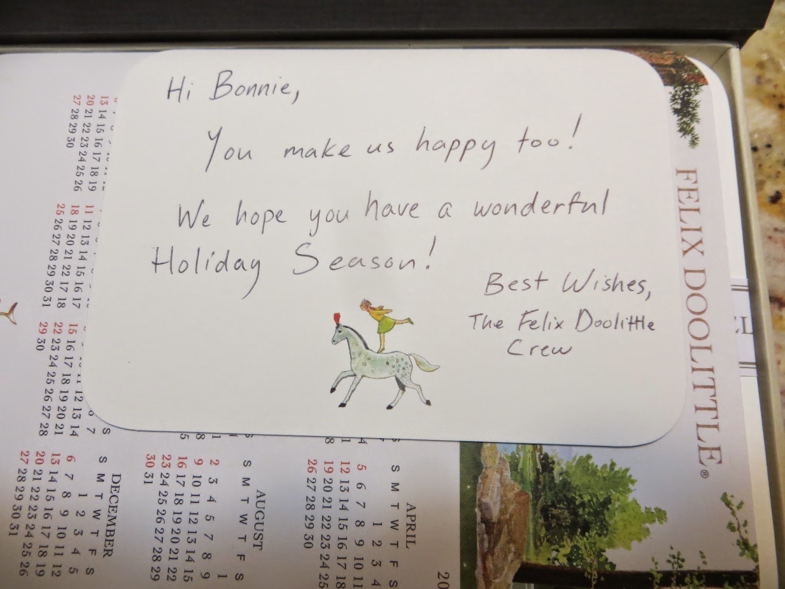 Just this week something was delivered to me ( love packages coming UPS!) in a brown box. No frills or bows, just to me, from Felix Doolittle ! I held it to my chest, thanking the stars above for this man.